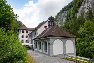 De Tamina rivier stroomt door kalkstenen wanden van 70 meter hoog, wat een smalle doorgang tussen rotsformaties creëert.