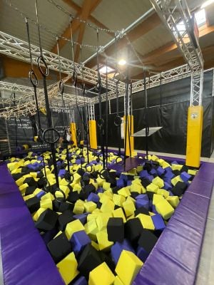 De faciliteit beschikt over een ninja warrior parcours, gespecialiseerde springzones en een schuimblokkenbassin voor het oefenen van acrobatische bewegingen.