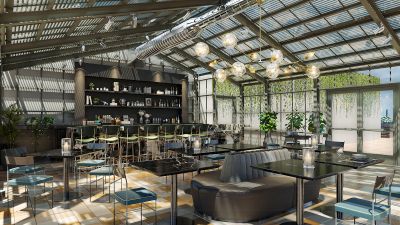 De zaak opende als onderdeel van het Line Hotel, waarbij een anders ongebruikte dakterrasruimte werd getransformeerd tot een levendige sociale hub die lokale architecturale trends weergeeft die buitenomgevingen in stedelijke omgevingen benadrukken.