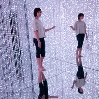 Dit immersieve kunstmuseum toont grootschalige, met water gevulde ruimtes waar bezoekers door interactieve digitale installaties wandelen die dynamisch reageren op hun aanwezigheid en beweging.