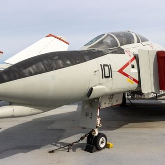 F-4N Phantom II, Militair vliegtuigmonument in het Intrepid Sea, Air & Space Museum in Manhattan, Verenigde Staten.