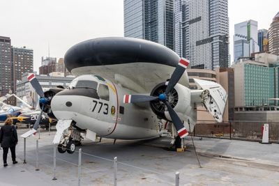 E-1B Tracer, Historisch militair vliegtuig tentoongesteld in het Intrepid Sea, Air & Space Museum in Manhattan, Verenigde Staten.