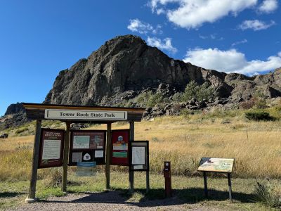 Tower Rock State Park is een natuurreservaat in Montana dat wordt gekenmerkt door een opvallende rotsvormatie die ongeveer 130 meter boven het omringende landschap uitstijgt. Het 56 hectare grote park beschikt over een goed onderhouden wandelpad van ongeveer 400 meter naar de basis van de rotsen en informatieve panelen die de vulkanische samenstelling en historische betekenis uitleggen.