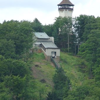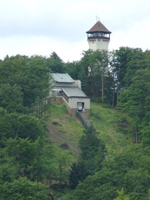 De Diana Toren rijst 40 meter op met een bakstenen constructie en overdekte houten galerij op 556 meter hoogte.