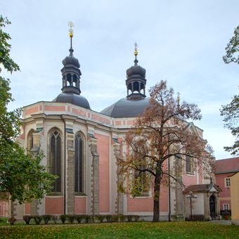 Keizer Karel IV stichtte deze kerk in 1350 als onderdeel van het Augustijner klooster, gebaseerd op het ontwerp van de kathedraal in Aken.