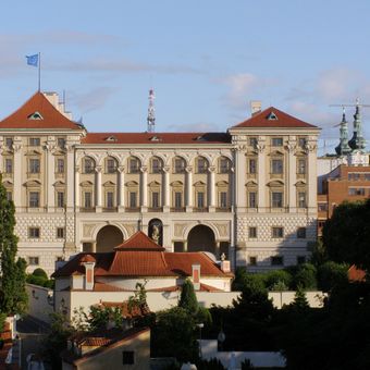 De bouw begon in 1669 onder de Italiaanse architect Francesco Caratti en sleepte zich voort tot 1677, waarbij latere generaties kleine aanpassingen maakten. Na de Eerste Wereldoorlog nam de nieuw gevormde Tsjechoslowaakse regering het gebouw over en liet vanaf 1933 de extra vleugel bouwen.