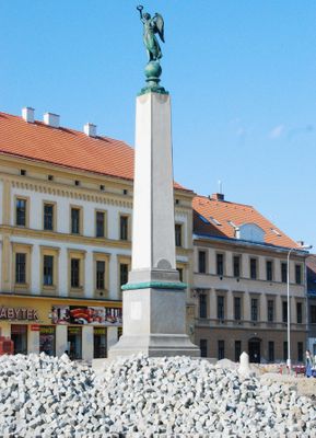 Het monument in het centrum van Znojmo bevat vier bronzen platen met Tsjechische vertalingen van herdenkingsinscripties in de omliggende bestrating.