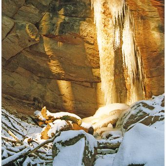 De natuurlijke locatie heeft twee watervallen: een bovenste met een val van 4 meter en een onderste die 8 meter valt door zandsteenformaties.