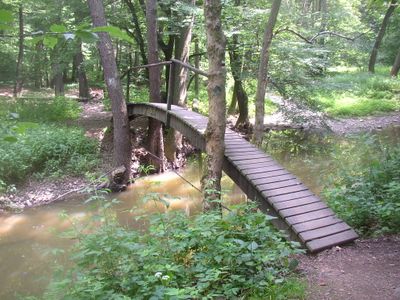 Lávka přes Zbirožský potok východně od hájovny Slap