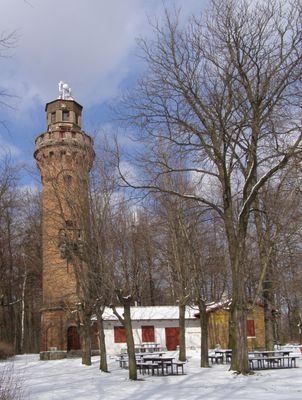 De stalen observatietoren rijst 20,8 meter boven de grond uit en biedt uitzicht over de noordelijke regio van de Tsjechische Republiek.