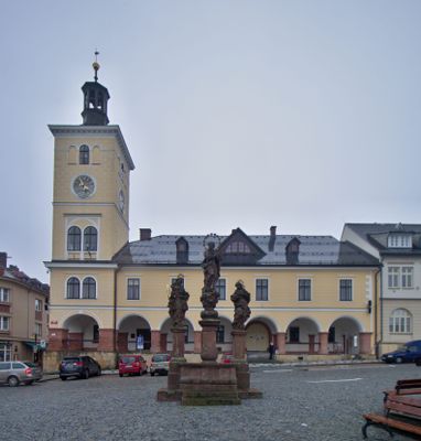 Het stadhuis van Jilemnice is een gemeentelijk gebouw in een bergstad onderscheiden door een achthoekige toren die oprijst vanuit het centrum op het hoofdplein. De structuur toont proporties van het vroege 20e eeuw met praktische ruimten voor administratie en een karakteristieke silhouet die het plein verankert.