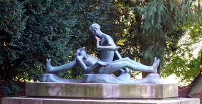 Soutok Labe s Orlicí, Beeldengroep in Jiráskovy Sady, Hradec Králové, Tsjechische Republiek.