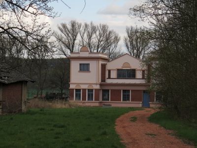 De waterkrachtcentrale staat langs de rivier de Ohře en gebruikt de waterstroom voor energieopwekking door zijn industriële architectuur.