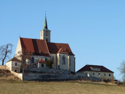 De Kerk van Maria's Hemelvaart is een katholiek kerkgebouw met traditionele architectuur en een opvallende centrale toren in het district Klatovy van de regio Pilsen. Het gebouw toont de typische ontwerpkenmerken van religieuze structuren uit deze streek.