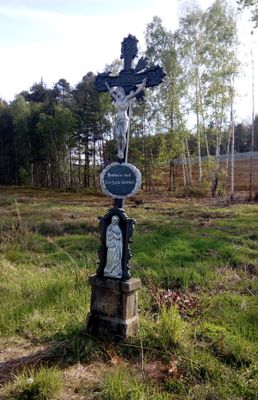 Wayside cross, iron wayside cross at Highway D3 in Ševětín, south Bohemia, Czechia