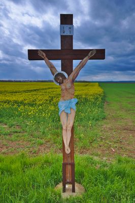 Kříž u Tištína uprostřed pole