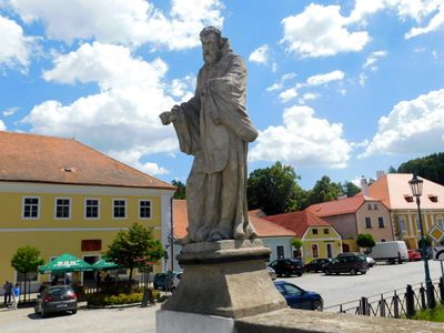 Socha svatého Jana Nepomuckého na barokním mostě v Brtnici