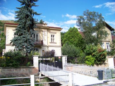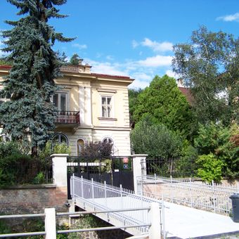 Most přes Šárecký potok z ulice V Podbabě k domu čo. 18