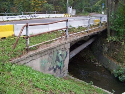 Most/lávka přes Kunratický potok severně od psí louky u ulice Před nádražím