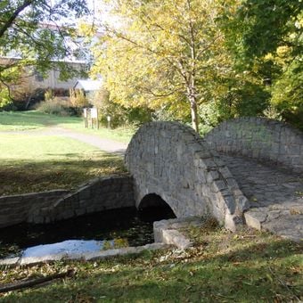 Můstek u Zámeckého pramene v Čakovickém zámeckém parku, bridge in Čakovice, Czech Republic