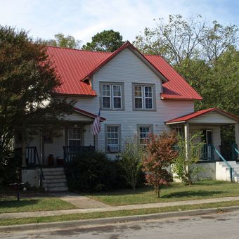 Het Merrimack Mill Village Historic District bevat woonstructuren gebouwd tussen 1900 en 1937 voor katoenarbeiders in zuidwestelijk Huntsville.