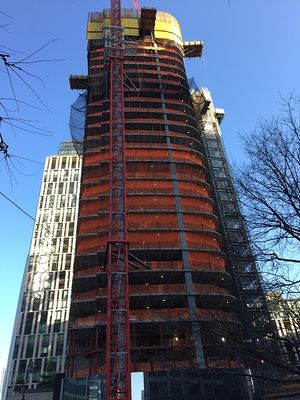 De 241 meter hoge residentiële toren heeft een gebogen glazen gevel met 58 verdiepingen en afgeronde hoeken aan tegenoverliggende uiteinden.