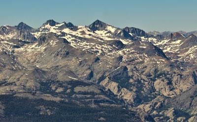 Vanaf de top ziet men Mount Davis, Banner Peak, Mount Ritter en de naburige Yosemite-toppen Maclure en Lyell.