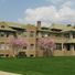 Het Wheeler-Stokely Landhuis toont beige bakstenen muren, keramische tegelbanden en een groen terracotta dak op 3,4 hectare grond.