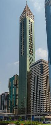 De Ahmed Abdul Rahim Al Attar Toren bereikt een hoogte van 342 meter met 76 verdiepingen en 528 kamers verdeeld over de glas- en aluminiumstructuur.