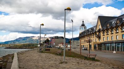 Gelegen aan de oevers van Seno Última Esperanza op 3 meter boven zeeniveau biedt Puerto Natales uitzicht op fjorden en bergen van Patagonië.