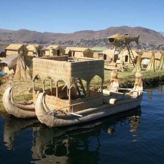 Het meer herbergt ongeveer 41 drijvende eilanden gemaakt van riet, waar Uros-gemeenschappen leven en huizen, boten en loopbruggen van hetzelfde materiaal bouwen. Deze bouwmethode wordt al eeuwenlang gebruikt en vereist constant onderhoud omdat het riet na verloop van tijd vergaat.