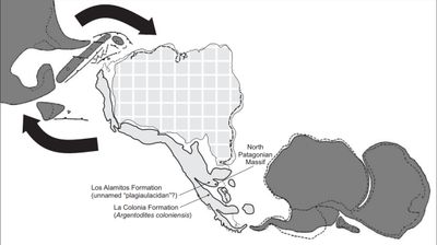 La Colonia Formation is een geologische laag in de provincie Chubut, samengesteld uit zandsten, leisteen en modderrots die tot 240 meter dik worden op sommige plaatsen. De rotslagen strekken zich uit over de regio en bevatten overvloedige fossielen uit de Laat-Krijt periode.