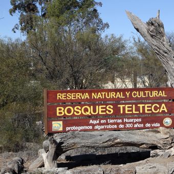 De Telteca Provincial Reserve is een park dat uitgestrekte woestijnterreinen met zandduinen en verspreide bossen bedekt in het noordoosten van Mendoza. Het landschap vertoont typische kenmerken van de Monte-vlakten, met open grond en bomen aangepast aan droge omstandigheden.