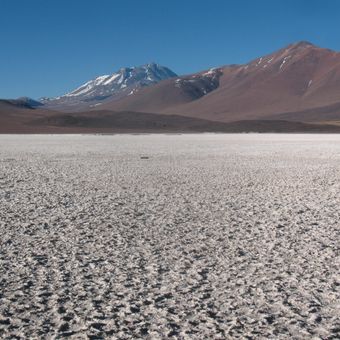 De Salar de Aguas Calientes IV strekt zich uit over 46 vierkante kilometer op een hoogte van 3.676 meter in het noordelijke Andesgebergte.