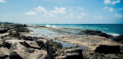 Dit strand strekt zich uit langs de kust met koraalformaties die bij laag water natuurlijke poelen vormen en bij hoog water zoutwater watervallen creëren. Het landschap verandert voortdurend met de getijden.
