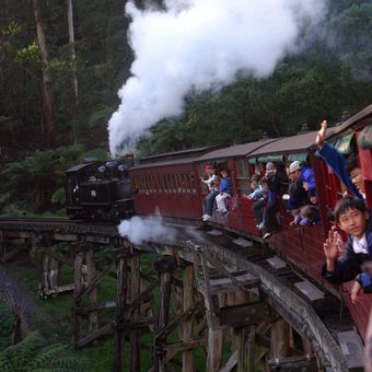 De Puffing Billy Railway is een smalsporlijn van 762 millimeter die van Belgrave naar Gembrook loopt door beboste hellingen en open dalen in de Dandenong Ranges. De route verbindt verschillende haltes en gaat door gebieden met boomvarens, eucalyptusbossen en landelijke weiden.