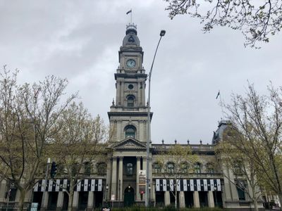 Het stadhuis van Collingwood staat aan Hoddle Street met een opvallende klokkentoren, mansardedaken en gedetailleerde Victoriaanse architectuurelementen over meerdere verdiepingen.