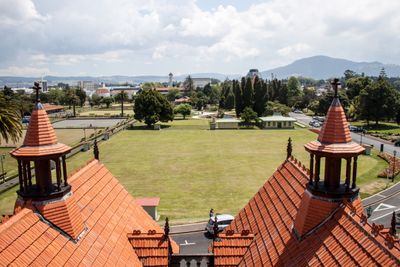 De tuinen combineren Victoriaans ontwerp met elementen van de Māori-cultuur, zichtbaar in hoe het Rotorua Museum-gebouw beide architecturale tradities verwerkt. Als je door verschillende secties loopt, zie je hoe deze twee stijlen naast elkaar bestaan in het landschap.