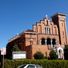 De Sint-Ignatius van Loyolakerk aan 46 Grove Street toont oranje en bruin metselwerk bekroond met Romeinse terracotta tegels op een steile helling.