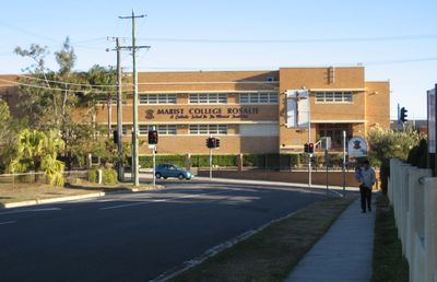 De gebouwen van Marist Brothers College staan aan Fernberg Road, met een symmetrische kloosterstructuur en onderwijsfaciliteiten op verhoogd terrein.