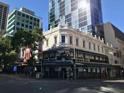 Het Treasury Hotel bevindt zich in een victoriaans gebouw van drie verdiepingen met klassieke details, decoratieve lijstwerk en gevormde vensterbanken op 175 George Street.