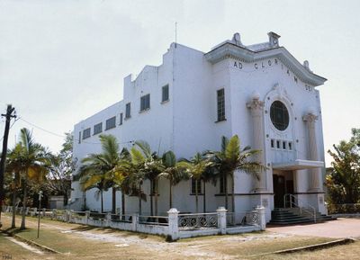 De Vrijmetselaarstempel van Cairns is een tweelaags betonnen gebouw met klassieke elementen, stalen ramen en Korinthische zuilen point.