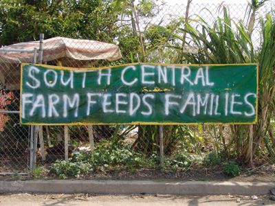 De South Central Farm besloeg 14 hectare grond waar 350 families groenten, fruit en kruiden konden verbouwen in individuele percelen.