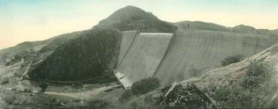 De bouw van de oorspronkelijke 67 meter hoge dam begon in 1940 en eindigde in 1943, voor wateropslag en overstromingsbeheersing.