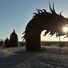 Een 107 meter lange metalen drakensculptuur rijst op uit het woestijnzand en creëert een illusie van beweging door het natuurlijke terrein.