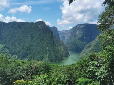 Sumidero Canyon National Park is een beschermd gebied langs de Grijalva-rivier in Chiapas. De kloof beslaat 21.789 hectare over vier gemeenten en bevat dicht regenwoud, watervallen en stroomversnellingen.