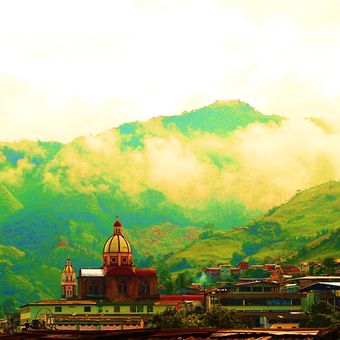 Manzanares strekt zich uit over bergketens op 1.871 meter boven zeeniveau, met groene valleien en landbouwgrond in het departement Caldas.