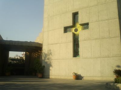 De Kathedraal van het Heilig Hart van Jezus vertoont een modernistisch ontwerp dat in zijn architectonische structuur lijkt op een pelgrimstent.