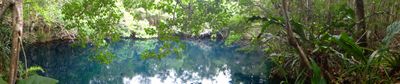 Deze doline ontstond door natuurlijke erosie van kalksteen over duizenden jaren. Het proces liet een diepe verticale opening in het gesteente na die nu met water is gevuld.