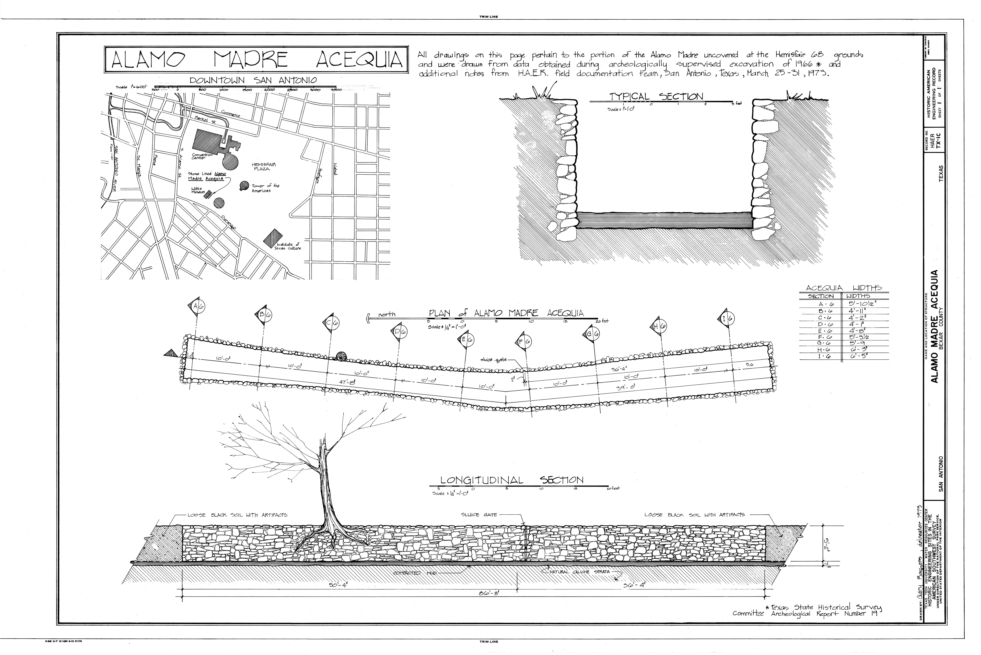 Het kanalennetwerk toont de engineering methoden van Spaanse kolonisten gecombineerd met inheemse arbeidstechnieken in de vroege Texas nederzettingen.